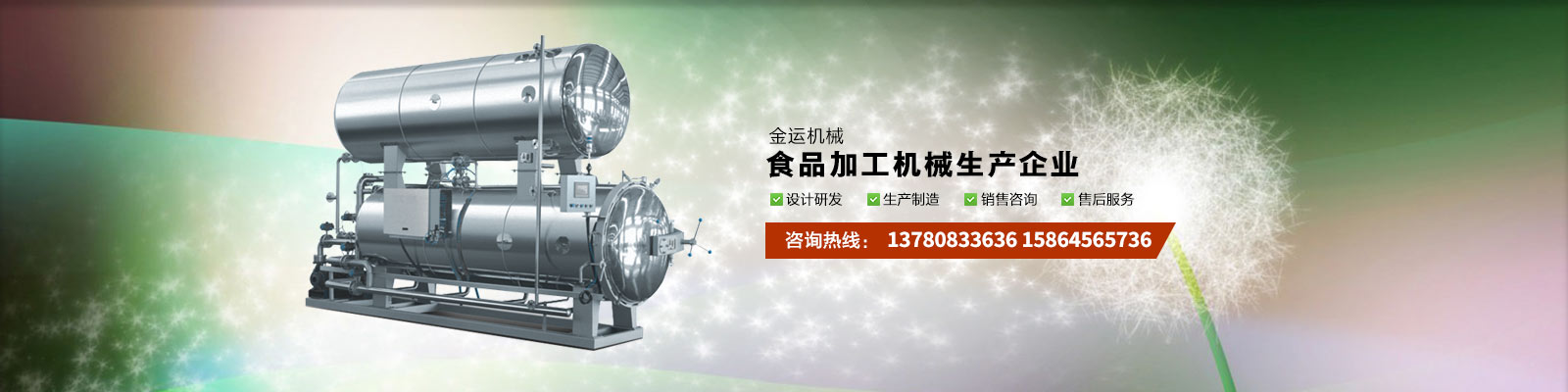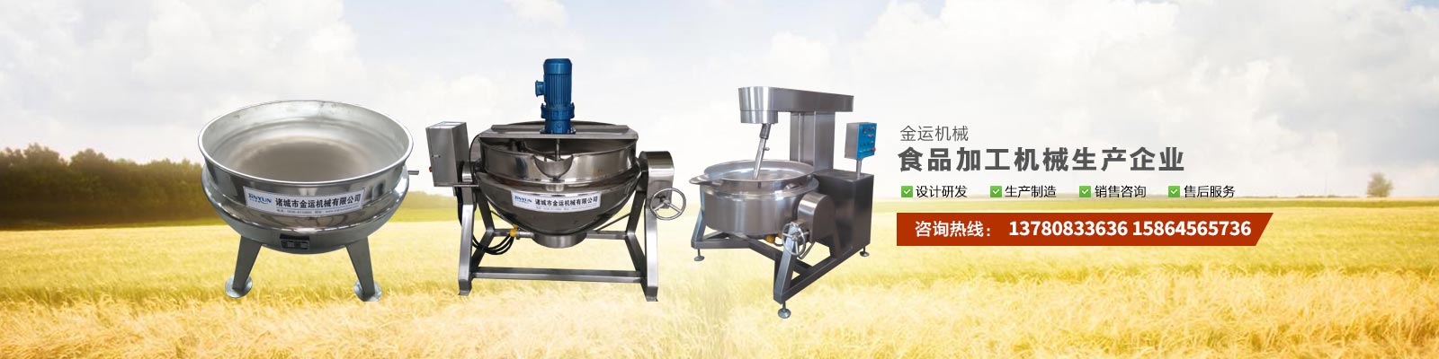 主要產(chǎn)品有:行星攪拌夾層鍋、夾層鍋、壓力煮鍋、各種餡料炒鍋、殺菌鍋(殺菌釜)、巴氏殺菌機(jī)、清洗流水線、風(fēng)干線、真空包裝機(jī)、滾揉機(jī)、斬拌機(jī)、鹽水注射機(jī)、大蒜脫皮機(jī)、大蒜分瓣機(jī)等,廣泛應(yīng)用于各種食品加工、食品殺菌及農(nóng)產(chǎn)品深加工、化工、醫(yī)藥的生產(chǎn)等。可滿足外資企業(yè)、合資企業(yè)及國(guó)內(nèi)大中小企業(yè)生產(chǎn)需求,產(chǎn)品暢銷全國(guó)各地。